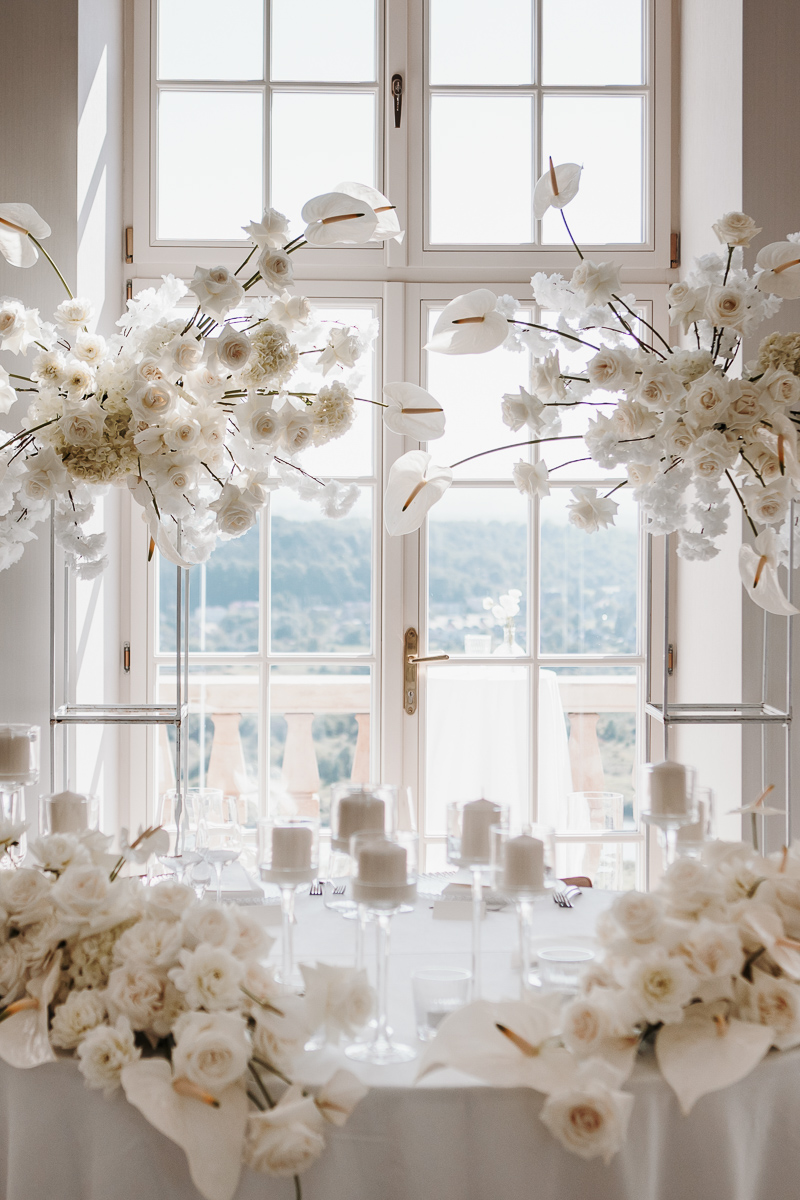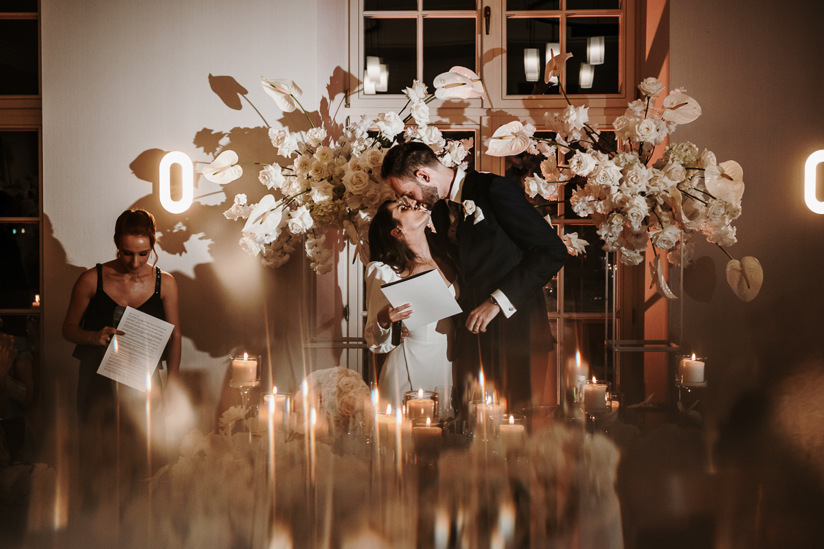 Guests arrived from all over the world, bringing a warm, international atmosphere to the celebration. A menu inspired by French cuisine, glasses filled with champagne, and a spectacular crème La Bouche wedding cake completed the story with elegance and joy.
