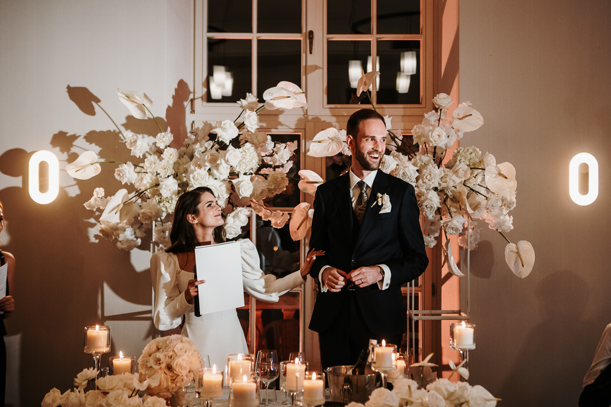 Goście przyjechali z całego świata, tworząc międzynarodową, ciepłą atmosferę. Menu z subtelną nutą Francji, kieliszki wypełnione szampanem i spektakularny tort crème La Bouche dopełniły tej opowieści o elegancji i radości.