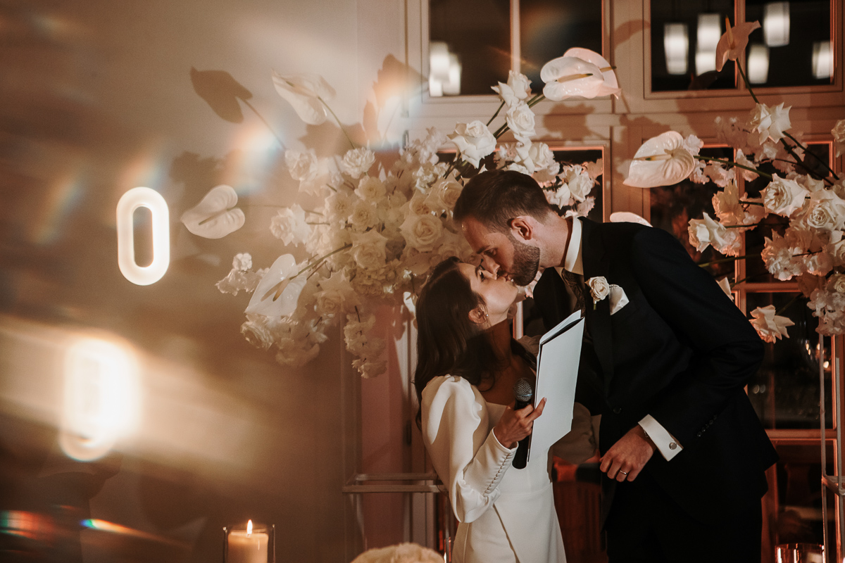 Goście przyjechali z całego świata, tworząc międzynarodową, ciepłą atmosferę. Menu z subtelną nutą Francji, kieliszki wypełnione szampanem i spektakularny tort crème La Bouche dopełniły tej opowieści o elegancji i radości.